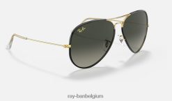 aviator full colour legende gepolijst zwart op goud/grijs XX46DZ823 Heren Ray-Ban zonnebril