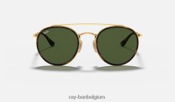 ronde dubbele brug gepolijst goud/groen XX46DZ283 Heren Ray-Ban zonnebril