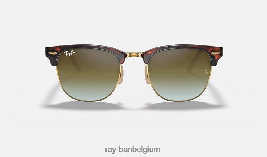 clubmaster flitslenzen verloop glanzend rood havana/groen XX46DZ989 Heren Ray-Ban zonnebril