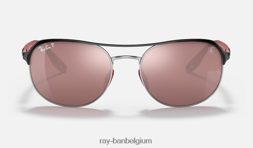 rb3685m scuderia ferrari-collectie gepolijst zwart op zilver/zilver XX46DZ1343 Heren Ray-Ban zonnebril